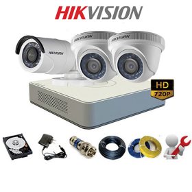 - 3 camera Hikvision Analog TVI- 1 Megapixel HD 1280×720 ( 720P) với camera lắp đặt trong nhà (DS-2CE56C0T-IRP) hoặc camera lắp đặt ngoài trời (DS-2CE16C0T-IRP)